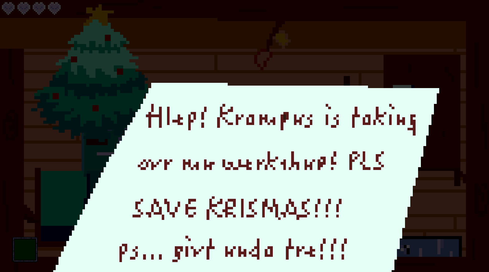 Santa has sent you a letter! It looks like Krampus is taking over his workshop! Grab the presents under the tree to aid your journey as you work to save Christmas. What secrets might they be hiding?